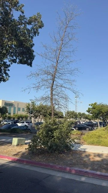 What Do you see? I see a tree in trouble. Left alone this tree will decline and die. How can this be? There’s no dead limbs, no discoloration, no damaged leaves. How can I tell? The irrigation system looks good.